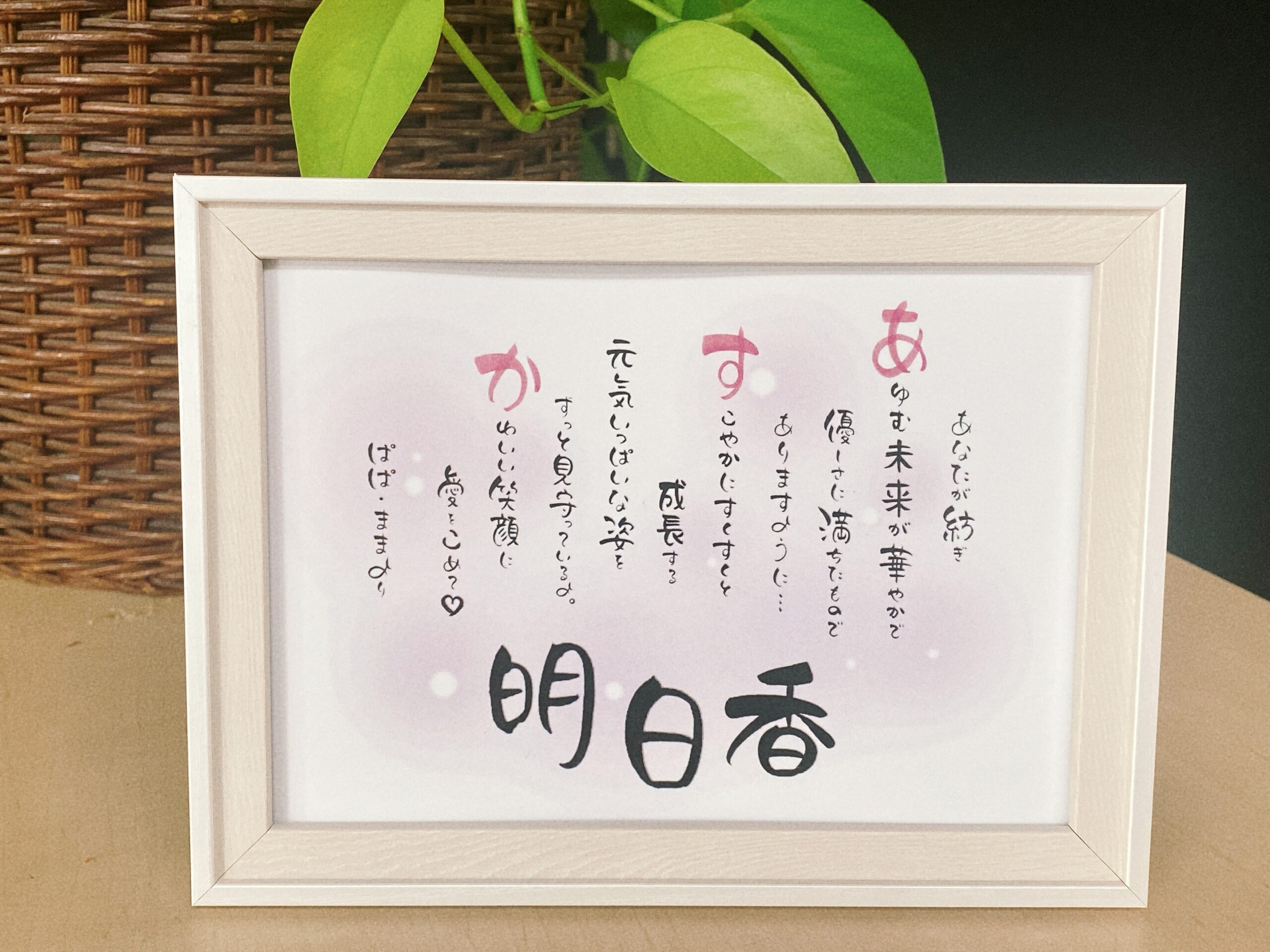 名前の詩に新しく命名紙を追加いたしました。パパママが授かった我が子にどうしてその名前を付けたのかを聞き取り詩として制作させていただきます。